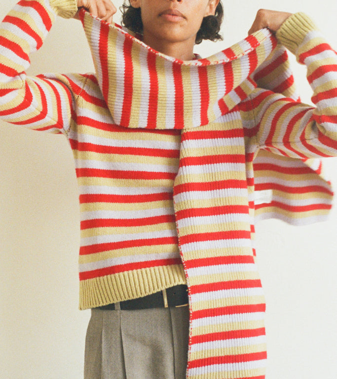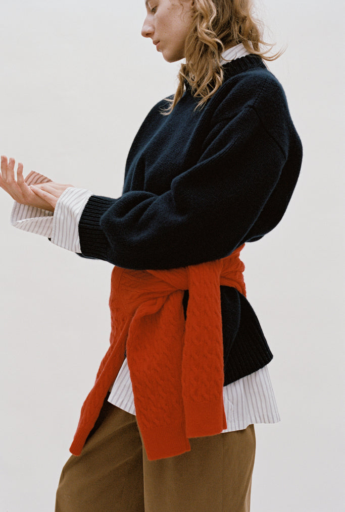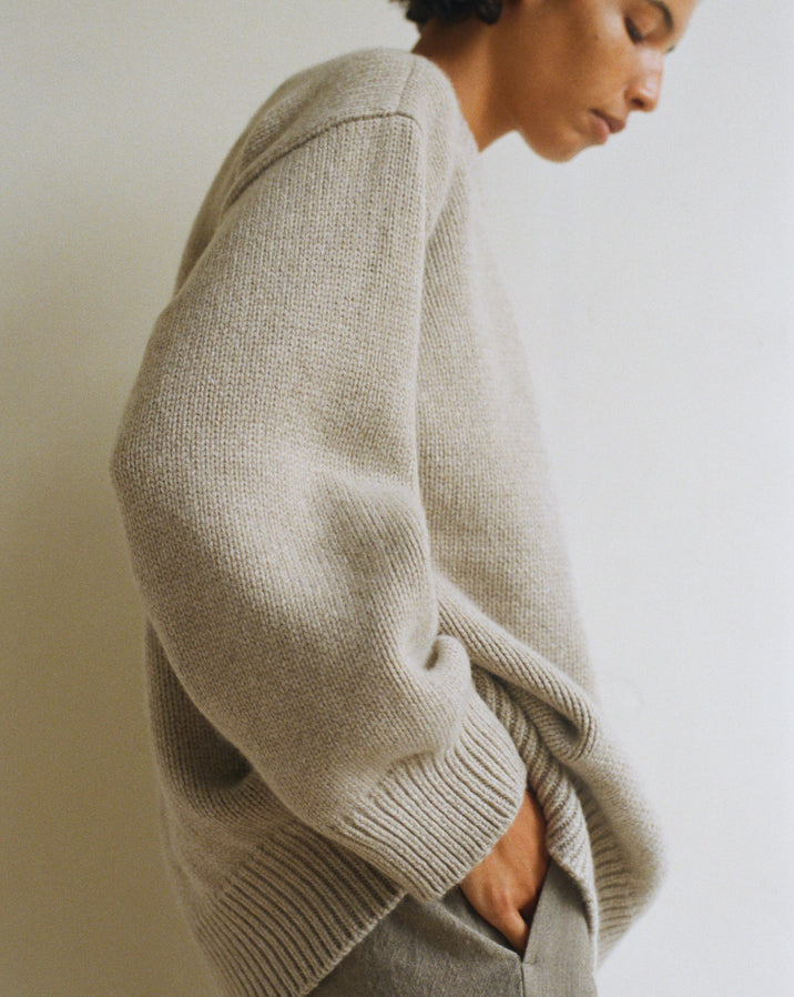 In partnership with our community of Scottish and Irish makers, &Daughter cherishes a legacy of skill and craftmanship passed through generations. A traditional process that crafts each piece of a sweater individually, linking them together by hand before intricately hand-finishing.