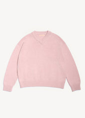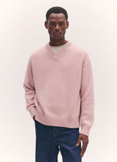 Ada Crewneck Cardigan in Pink and Oatmeal Mouline