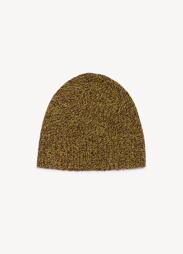The Rib Trim Cashmere Hat in Port and Punch Mouline. Crafted from super soft cashmere. The rib trim adds a subtle texture, alongside the vibrant stripe. New this season in Mouline yarn. Mouline is a twisted yarn made up, in this style, of three shades, lime green, pale pink & burgundy, creating a speckled appearance.