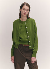 Ada Crewneck Cardigan in Pickle Green