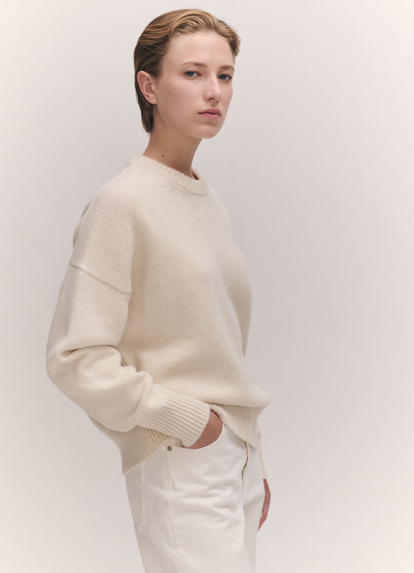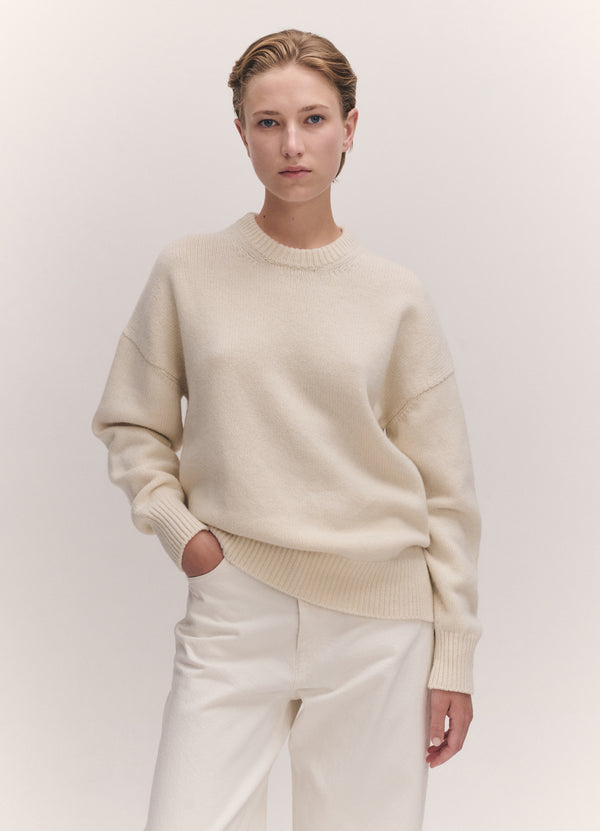 The Balla Crewneck is crafted in a chunky 5-gauge weight for a beautifully soft hand-feel and tactile warmth. Subtly draped and gently oversized for a relaxed fit.