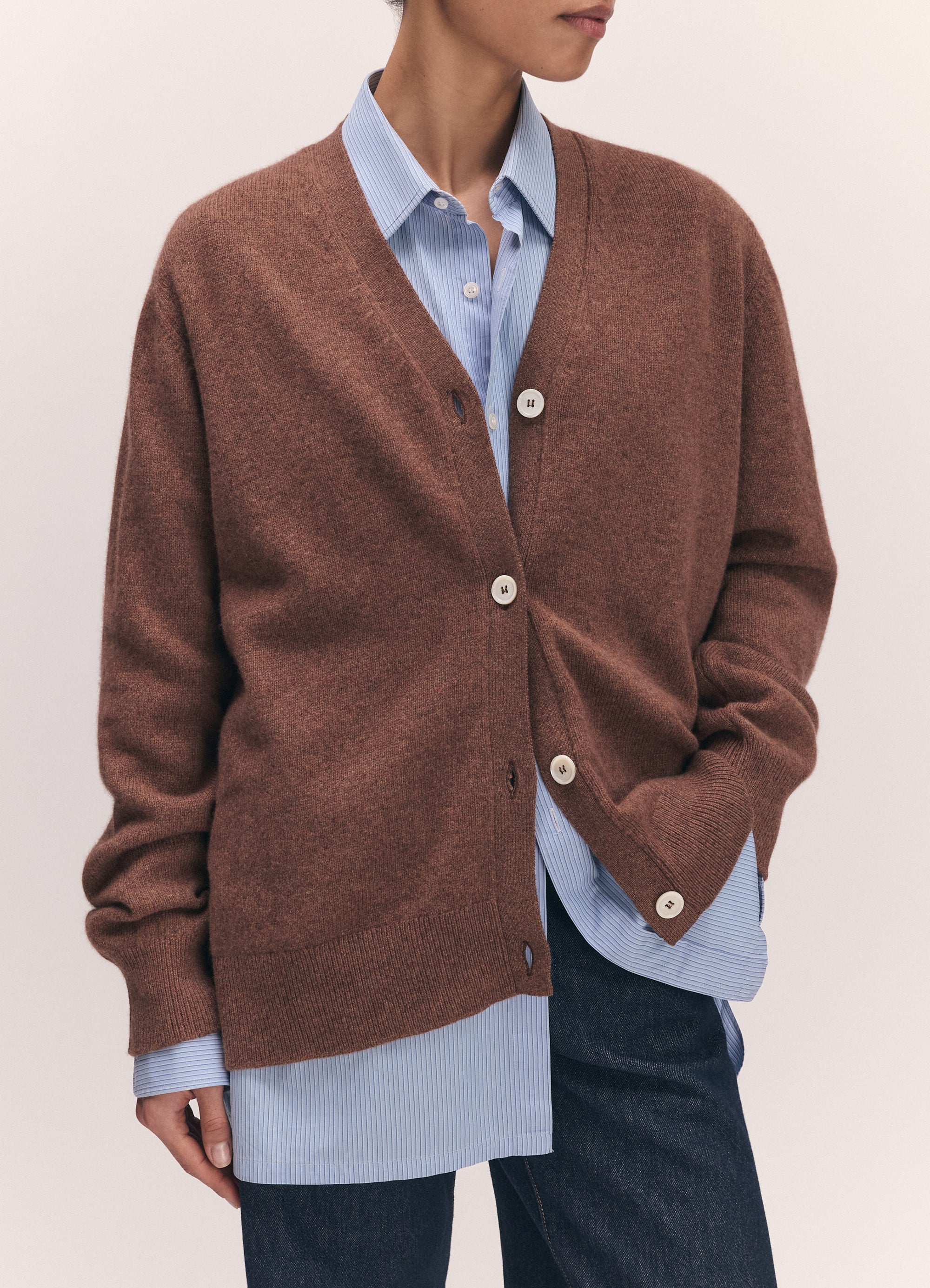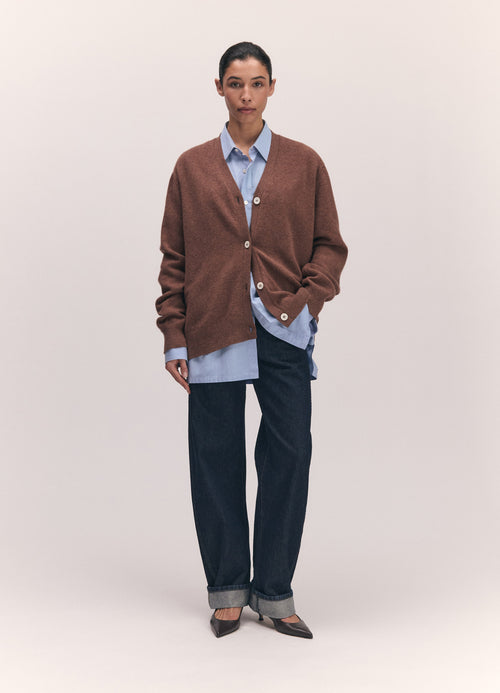 Introducing the Ava Cardigan in Hazelnut, knit in super soft, Scottish-spun Geelong lambswool. Its silhouette is neither slim, nor oversized, and has a subtle slouch for ease of layering with an elegant drape.