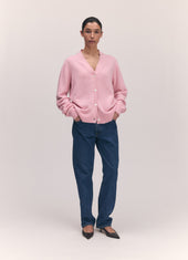 Tahra Cashmere V-Neck in Pale Pink