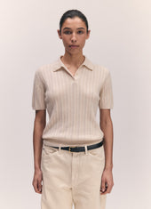 Mhairi Pointelle Polo Shirt in Ecru