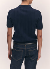 Mhairi Pointelle Polo Shirt in Navy