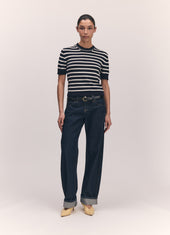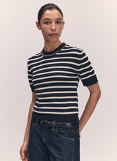 Shona Stripe T-Shirt in Navy with Ecru