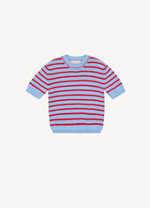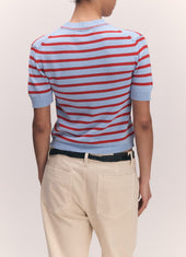 Shona Stripe T-Shirt in Pale Blue with Red