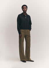 Arklow Extrafine Merino Ribbed Polo Shirt in Black