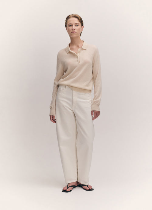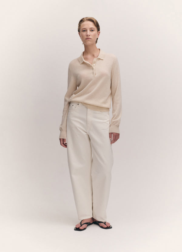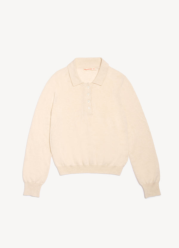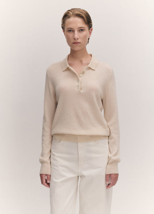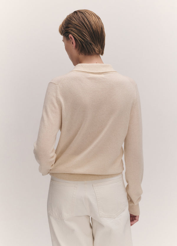 The Aoife Cashmere Polo Shirt. Crafted in Scotland from fine-spun, lightweight cashmere, in a soft shade of Canvas. Part of our Underpinnings collection: a foundational shape designed to be worn on its own or as an effortless transitional piece, easily layered.