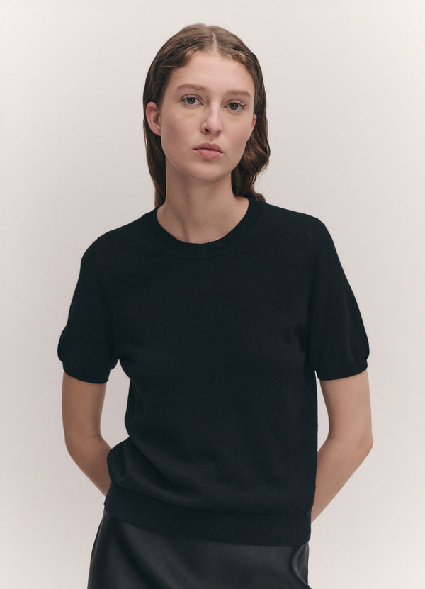 The Emer Cashmere T-Shirt, crafted in Scotland from fine-spun, lightweight cashmere. Part of our Underpinnings collection, the Emer is a foundational shape designed to be worn on its own or as an effortless transitional piece, easily layered.
