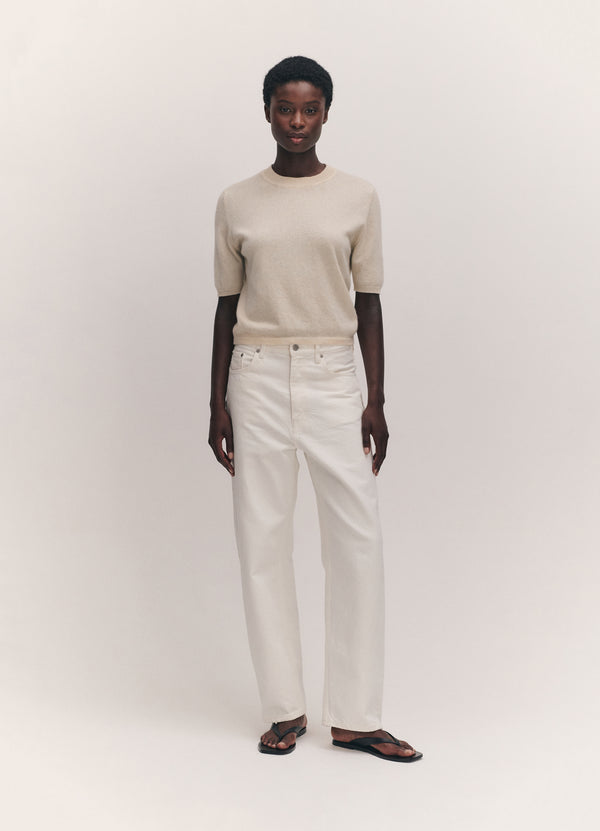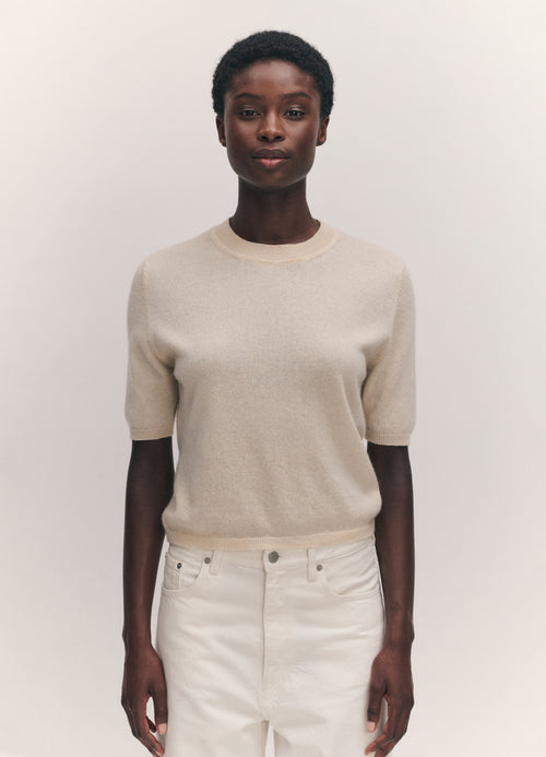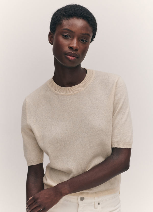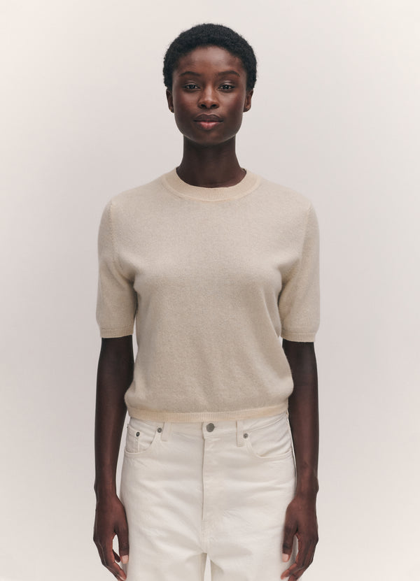 The Emer Cashmere T-Shirt, crafted in Scotland from fine-spun, lightweight cashmere. Part of our Underpinnings collection, the Emer is a foundational shape designed to be worn on its own or as an effortless transitional piece, easily layered.