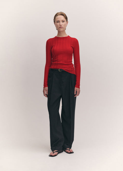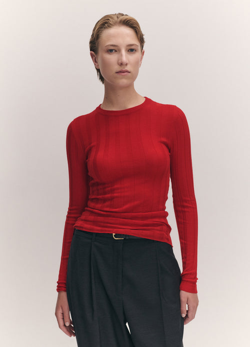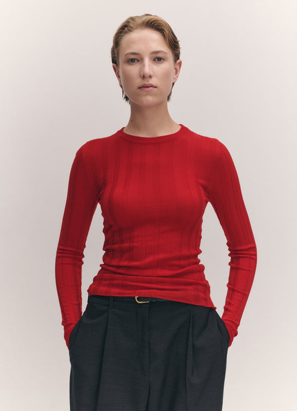 The Arklow Extrafine Merino Ribbed Crewneck. A ribbed crew made from extra-fine merino wool. Hand crafted in Scotland, with a finer micron count than cashmere, making it incredibly soft to the touch but with the warmth and wear of the finest wool. In a slim-fit silhouette with classic crewneck, a wardrobe staple.