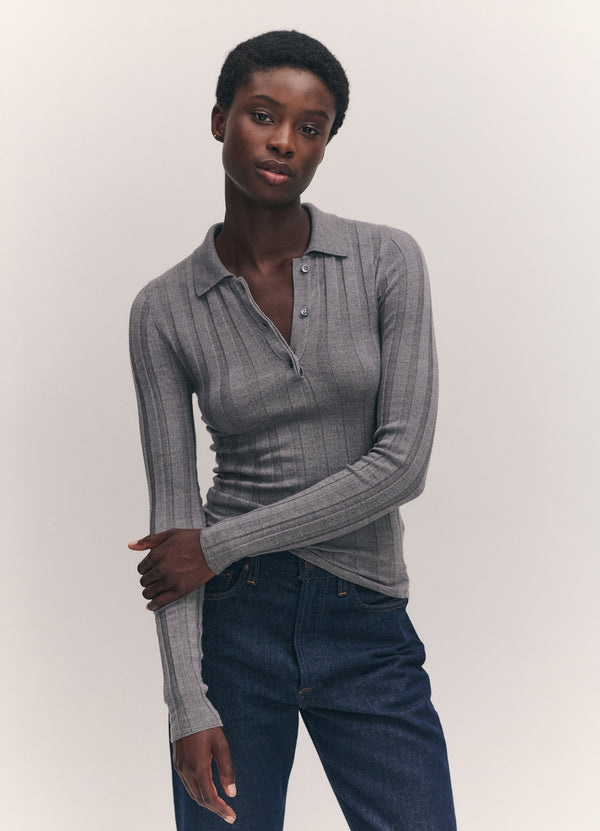 The Arklow Extrafine Merino Ribbed Polo Shirt. A rib polo made from extra-fine merino wool. Hand crafted in Scotland, with a finer micron count than cashmere, making it incredibly soft and lightweight to the touch but with the warmth and wear of the finest wool. In essence, the style we can't take off.