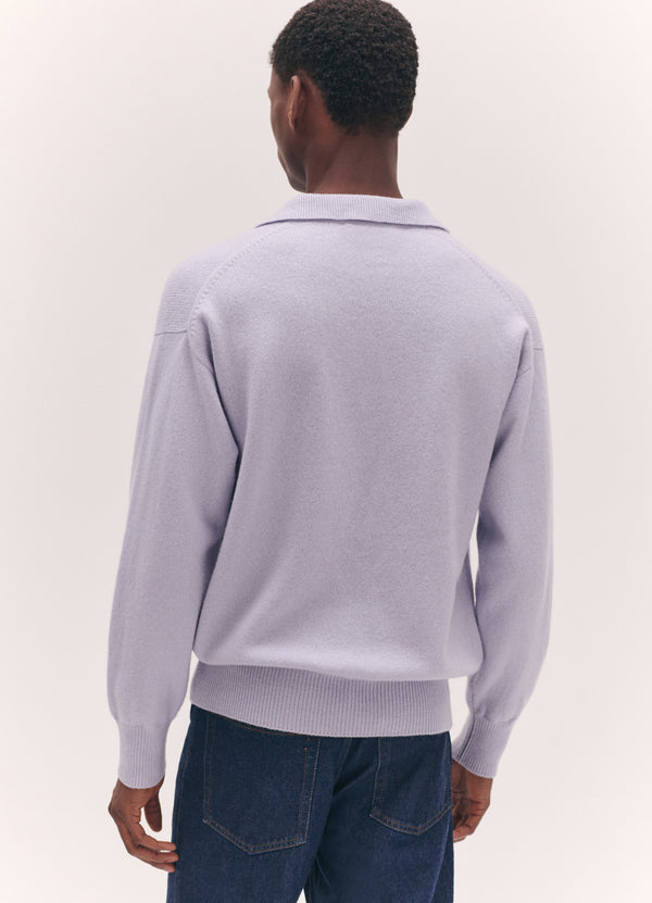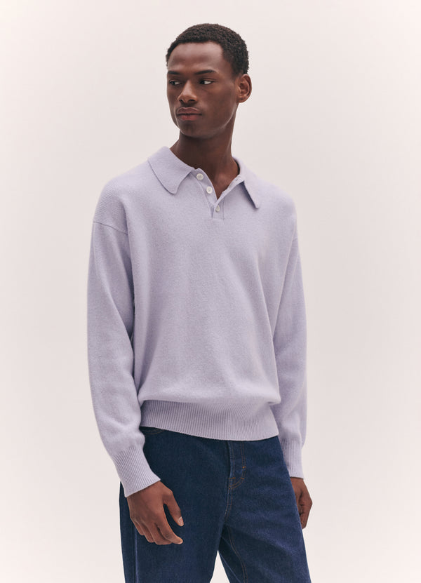 In soft Scottish-spun lambswool, the Edith Polo Shirt is vintage sports-inspired, in derby grey. In a soft-silhouette with a slight dropped shoulder for subtle drape. Finished with rib cuff and collar and trocas shell buttons.