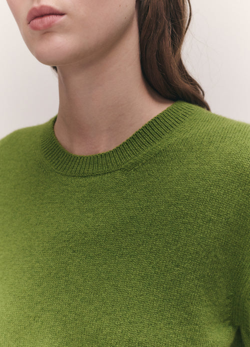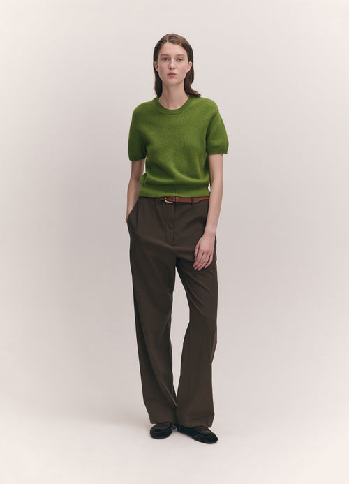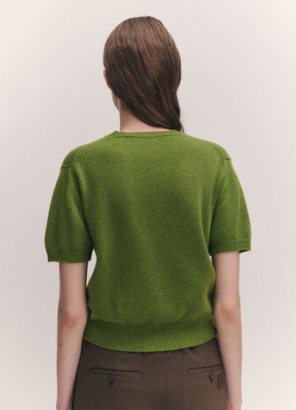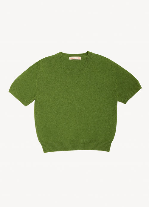In the softest, Scottish-spun Geelong Lambswool, our Wicklow T-Shirt in Pickle Green has a subtly slouchy silhouette, sitting just above the waist, with gently voluminous short sleeves. A piece which pairs effortlessly, layered or worn on its own.