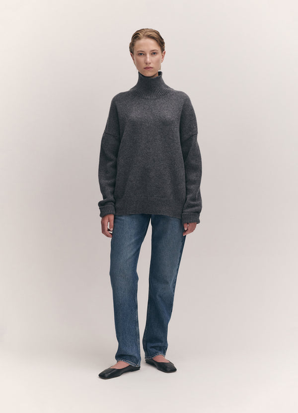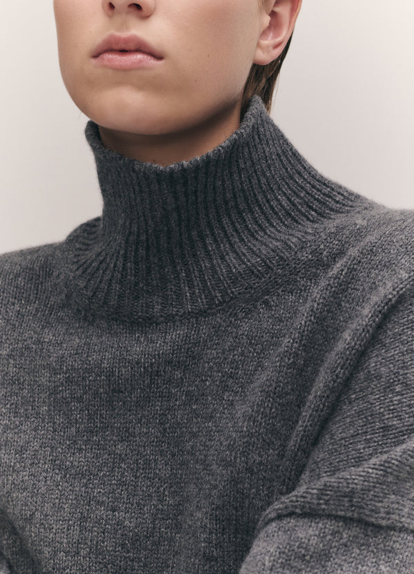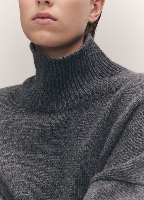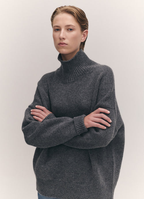 The Balla High Neck is crafted in a chunky 5-gauge weight for a beautifully soft hand-feel. With a jaw-grazing high neck collar and gently draped proportions, this knit combines relaxed elegance with enveloping warmth, crafted in soft, Scottish-spun lambswool.