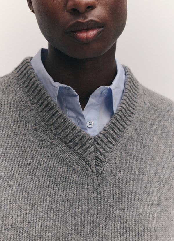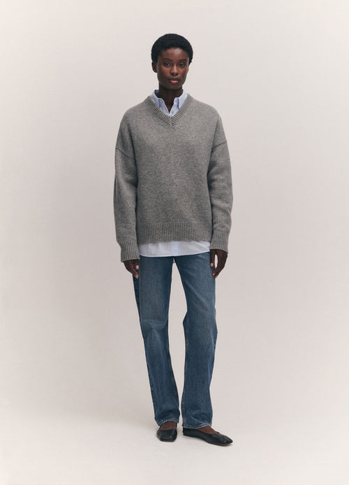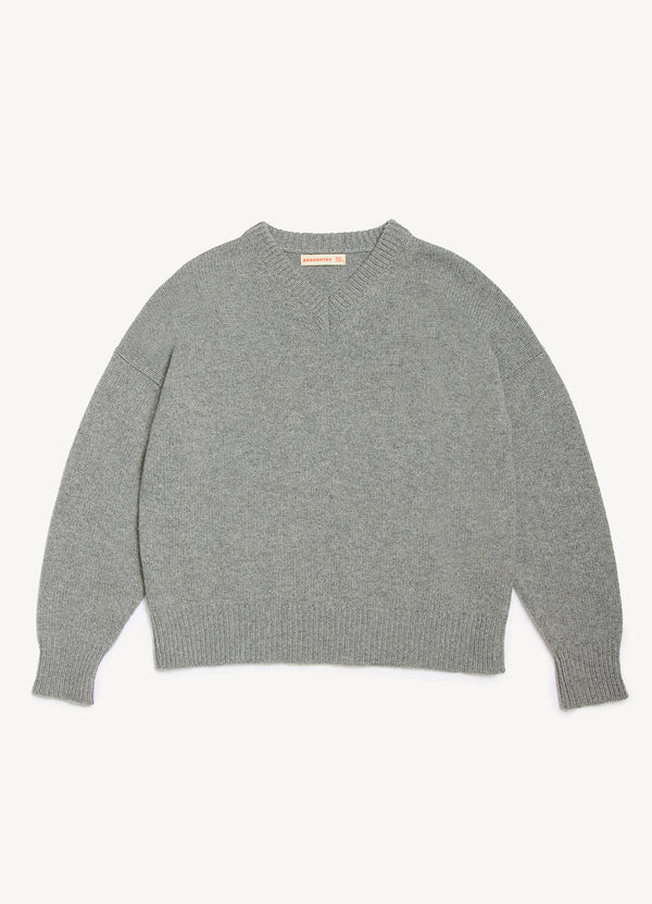 The soft elegance of a boyish v-neck collar. The Balla V is crafted in a chunky 5-gauge weight for a beautifully soft hand-feel and tactile warmth. Subtly draped and gently oversized.