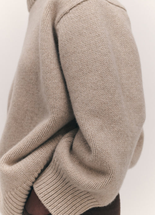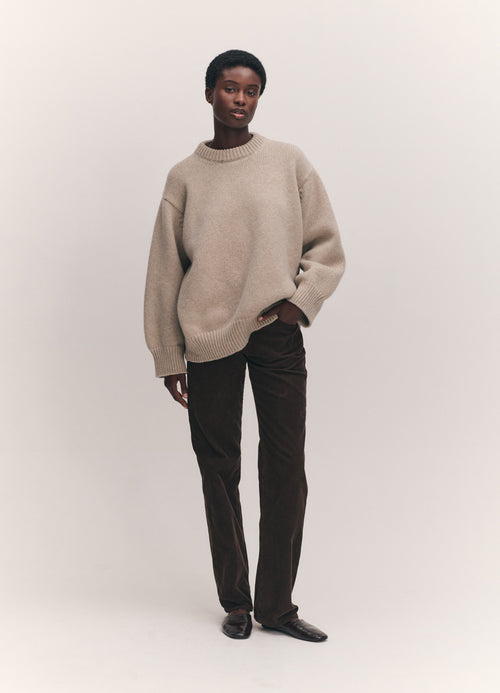 Knit in 100% Geelong Lambswool that is Responsible Wool Standard certified, proportions are slouchy through the body and sleeve with chunky collar and cuffs.