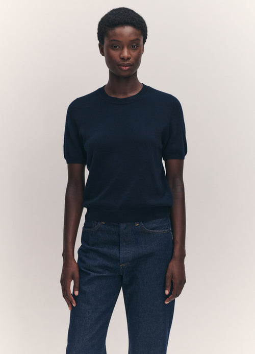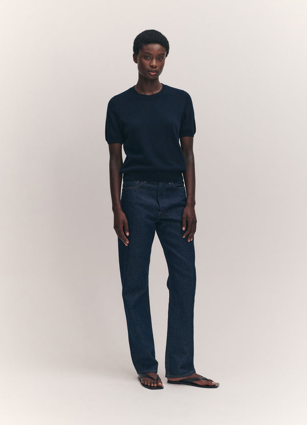 The Emer Cashmere T-Shirt, crafted in Scotland from fine-spun, lightweight cashmere. Part of our Underpinnings collection, the Emer is a foundational shape designed to be worn on its own or as an effortless transitional piece, easily layered.