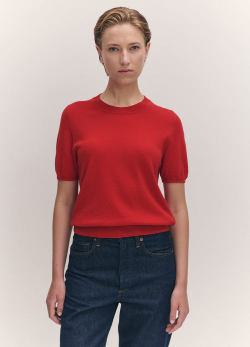 The Emer Cashmere T-Shirt, crafted in Scotland from fine-spun, lightweight cashmere. Part of our Underpinnings collection, the Emer is a foundational shape designed to be worn on its own or as an effortless transitional piece, easily layered.