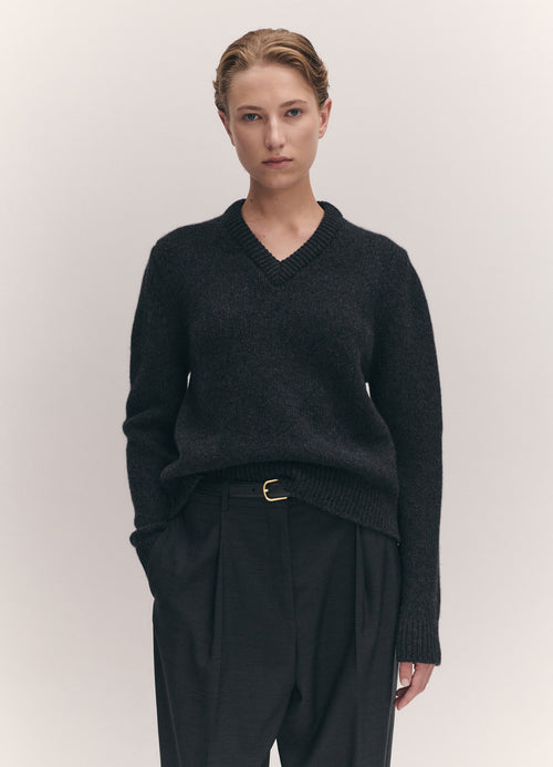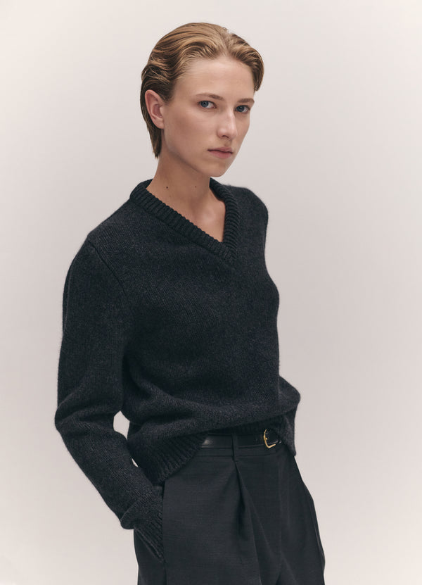 The more yarn a jumper has, the softer it is and the better it wears through time. The Glenn is crafted in a chunky 5-gauge weight for a beautifully soft hand-feel and tactile warmth. Subtly draped and gently shrunken for an agile fit.
