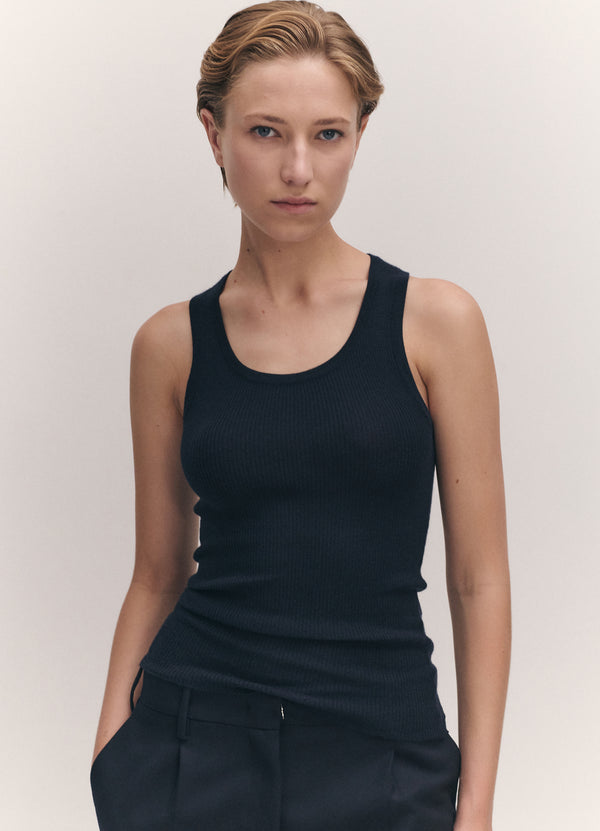 A summer quintessential, the Tierna Fine Rib Merino Tank is our take on the classic rib tank, re-imagined in the finest lightweight merino yarn. Elevating a classic silhouette for an ease of elegance.