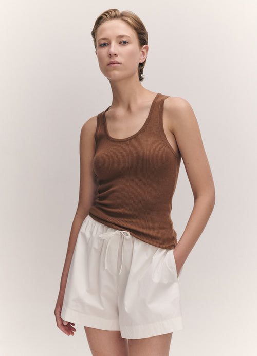 A summer quintessential, the Tierna Fine Rib Merino Tank is our take on the classic rib tank, re-imagined in the finest lightweight merino yarn. Elevating a classic silhouette for an ease of elegance.