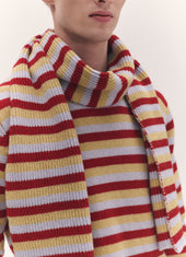 Striped Cashmere Scarf in Ruby Red and Dust Blue Stripe