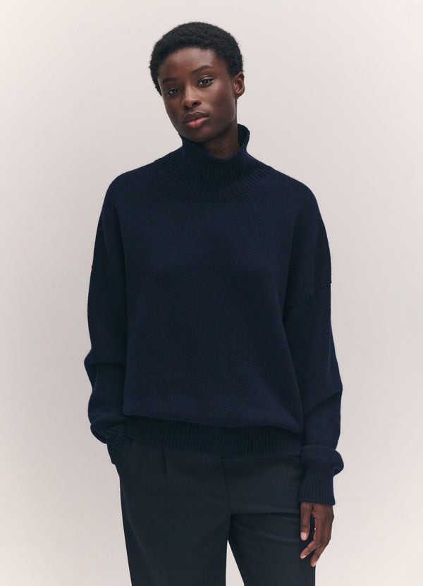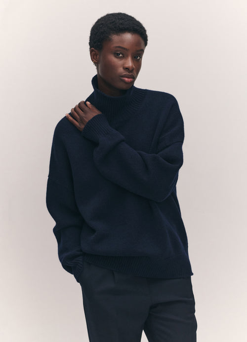 The Balla Slouch High Neck is crafted in a chunky 5-gauge weight for a beautifully soft hand-feel. With a jaw-grazing high-neck collar and gently draped proportions, the Balla high-neck combines relaxed elegance with enveloping warmth, crafted in soft, Scottish-spun lambswool.