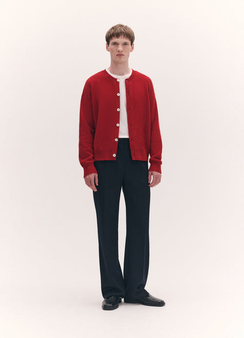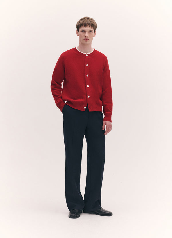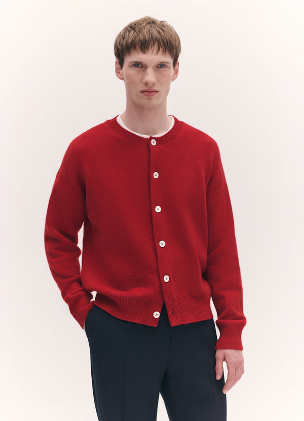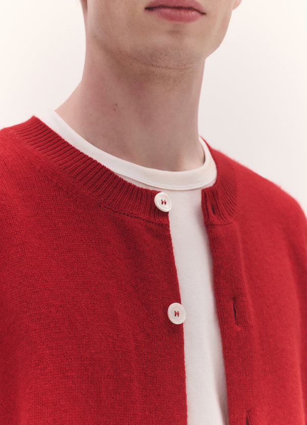 The Mens Ada Crewneck Cardigan in the softest, Scottish-spun geelong lambswool. Inspired by the old school classicism of a crewneck cardigan but with a gently modern sensibility, proportions are softened and subtly slouchy to create a relaxed silhouette. Finished with responsibly sourced Trocas shell buttons.