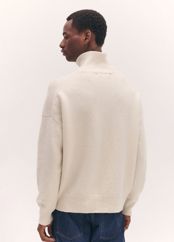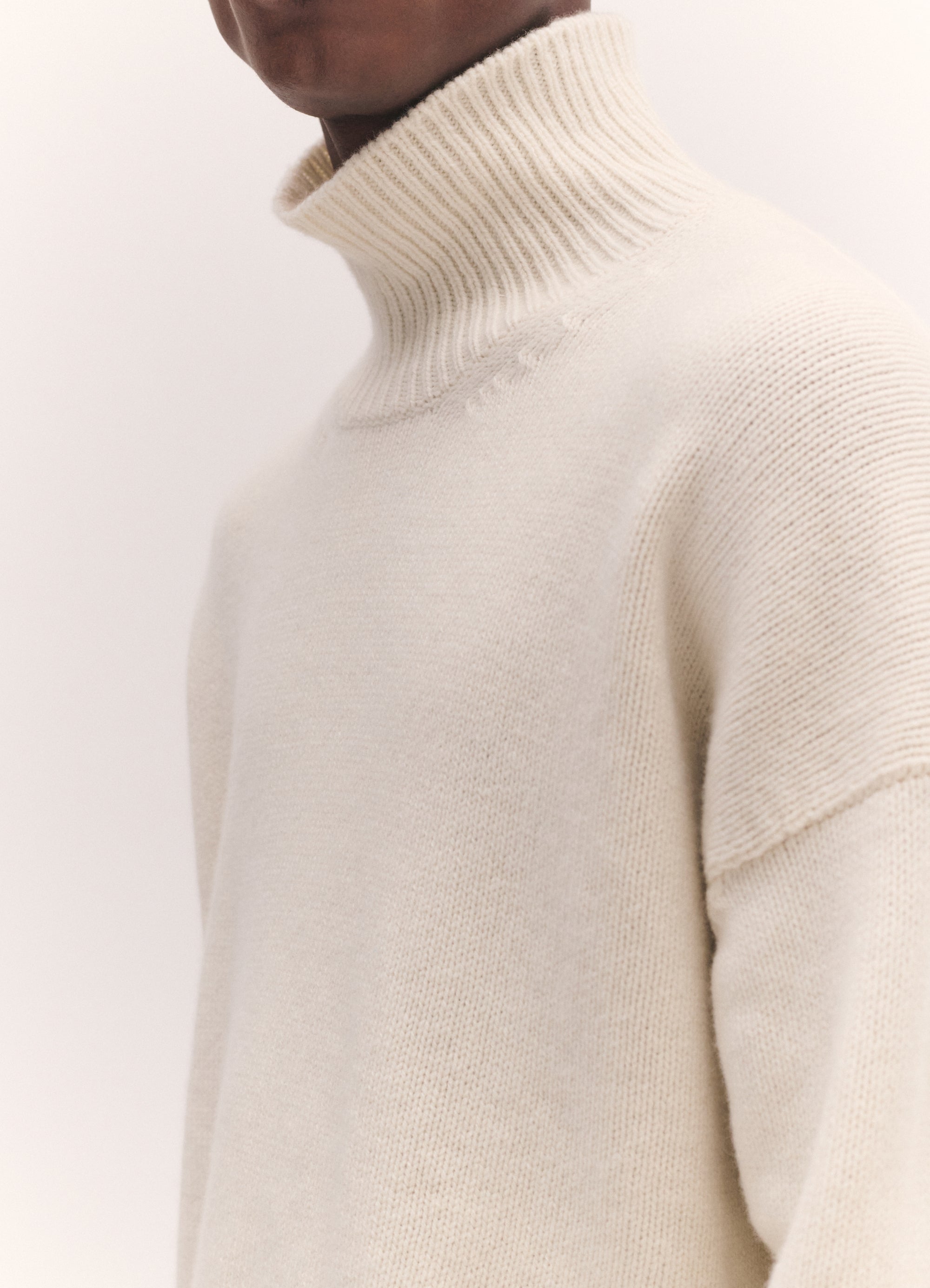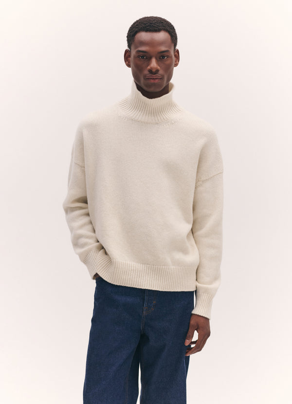 The Balla High Neck is crafted in a chunky 5-gauge weight for a beautifully soft hand-feel. With a jaw-grazing high neck collar and gently draped proportions, this knit combines relaxed elegance with enveloping warmth, crafted in soft, Scottish-spun lambswool.