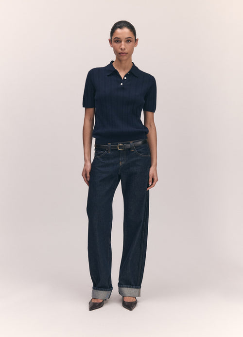 The Mhairi Pointelle Polo in a super-soft cashmere cotton blend, combining the lightness of cotton with the softness of cashmere. Inspired by vintage knit polos and classic summer knitwear, this piece has a gently feminine sensibility with an easy, relaxed feel.